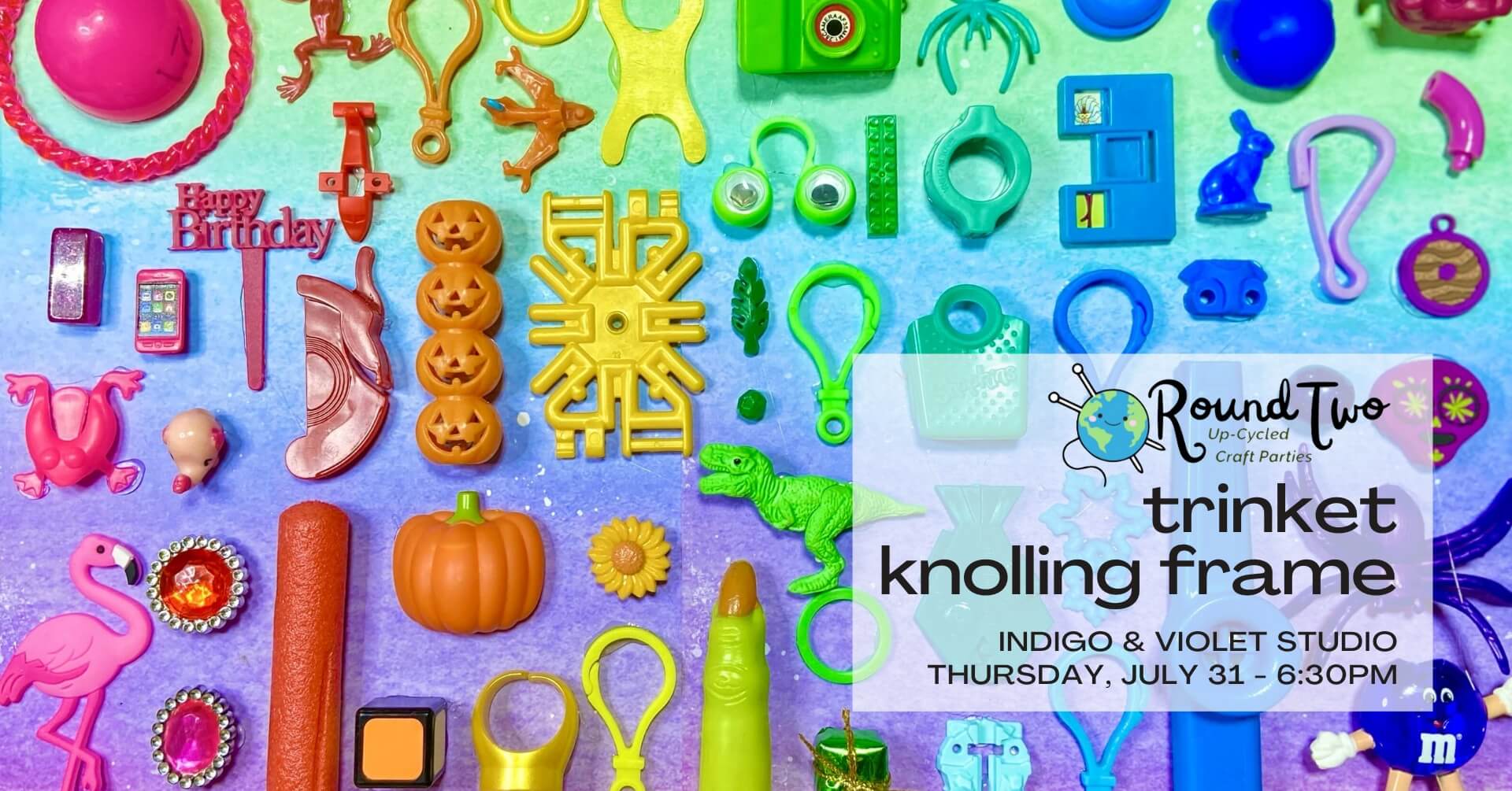 Join Jessica of Round Two Upcyled Craft Parties at Indigo & Violet Studio to learn about knolling and give a second life to upcycled trinkets and objects!