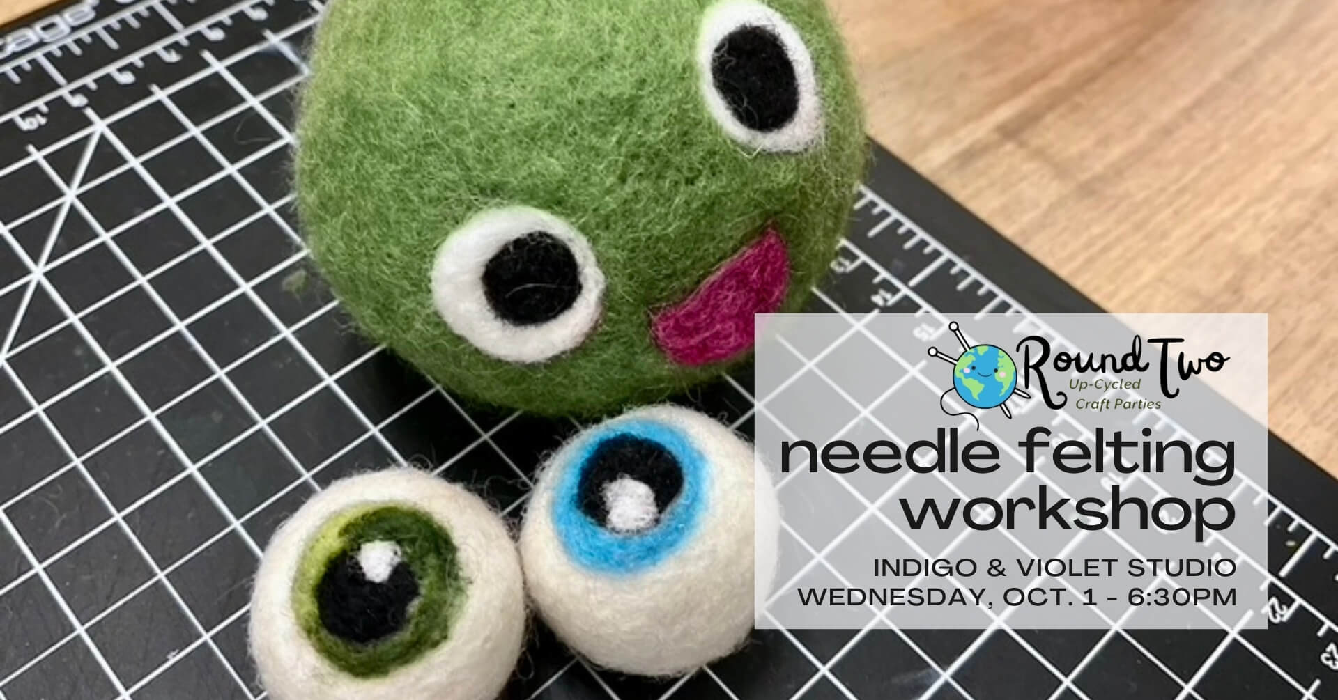 Join Jessica of Round Two at Indigo & Violet Studio for needle-felting dryer balls on October 1st!