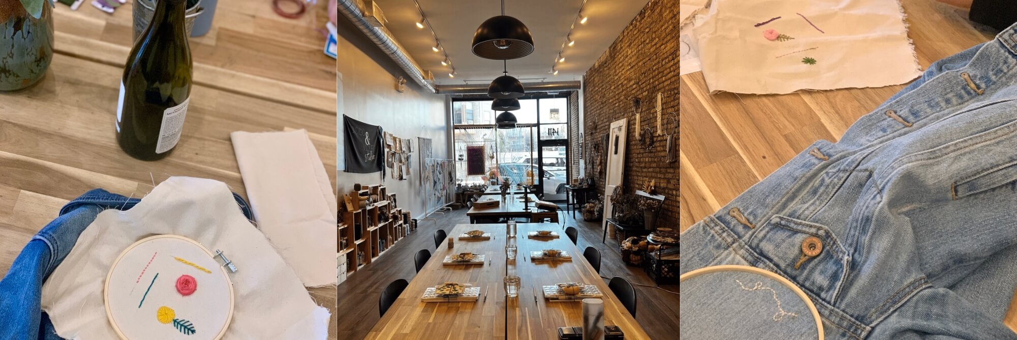 We will start with practice stitches, leaves, and flowers - then you will be able to sketch your design onto your item and begin creating. You'll lihe great part of this workshop is that you will take home the DIY kit to continue embroidering at home!