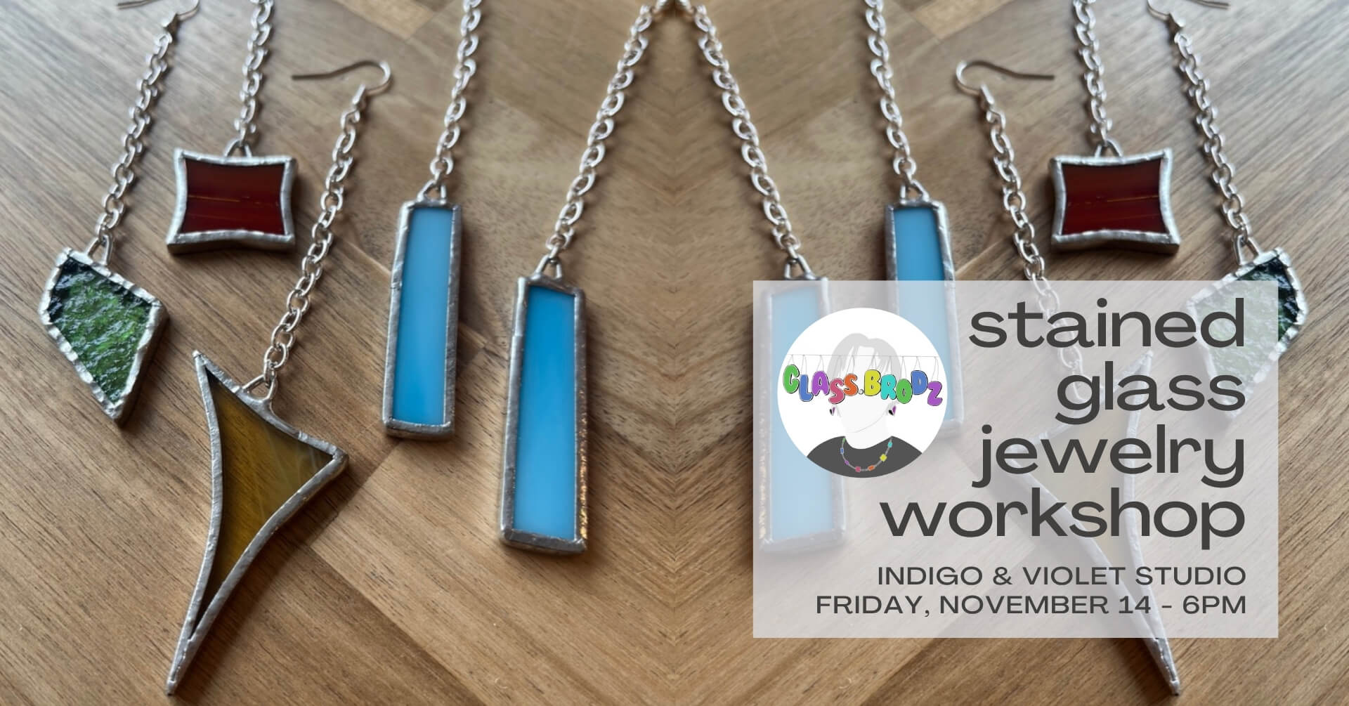 Join us for a custom stained glass jewelry workshop with Molly of Glass.Brodz!!!